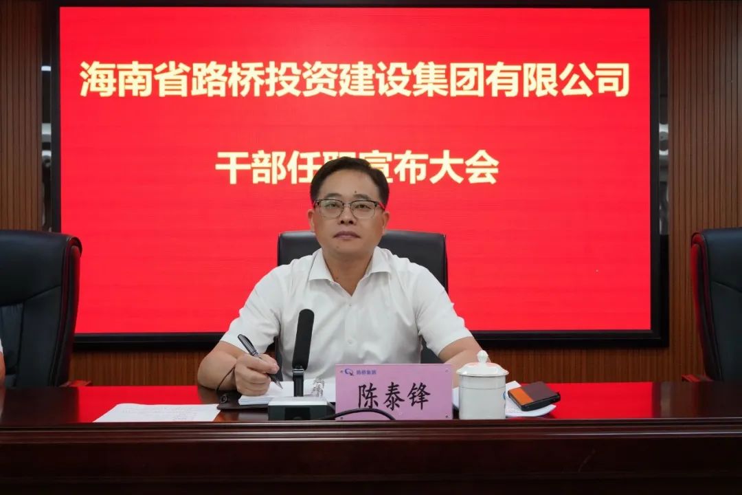 8月18日下午,海南路橋召開干部任職宣布大會,宣布海南交投黨委關于海南路橋領導班子有關任職決定。海南交投黨委書記、董事長陳泰鋒出席會議并講話,海南交投黨委委員、副總經理胡東及有關部門負責人,海南路橋領導班子成員、中層干部和本部員工參會。