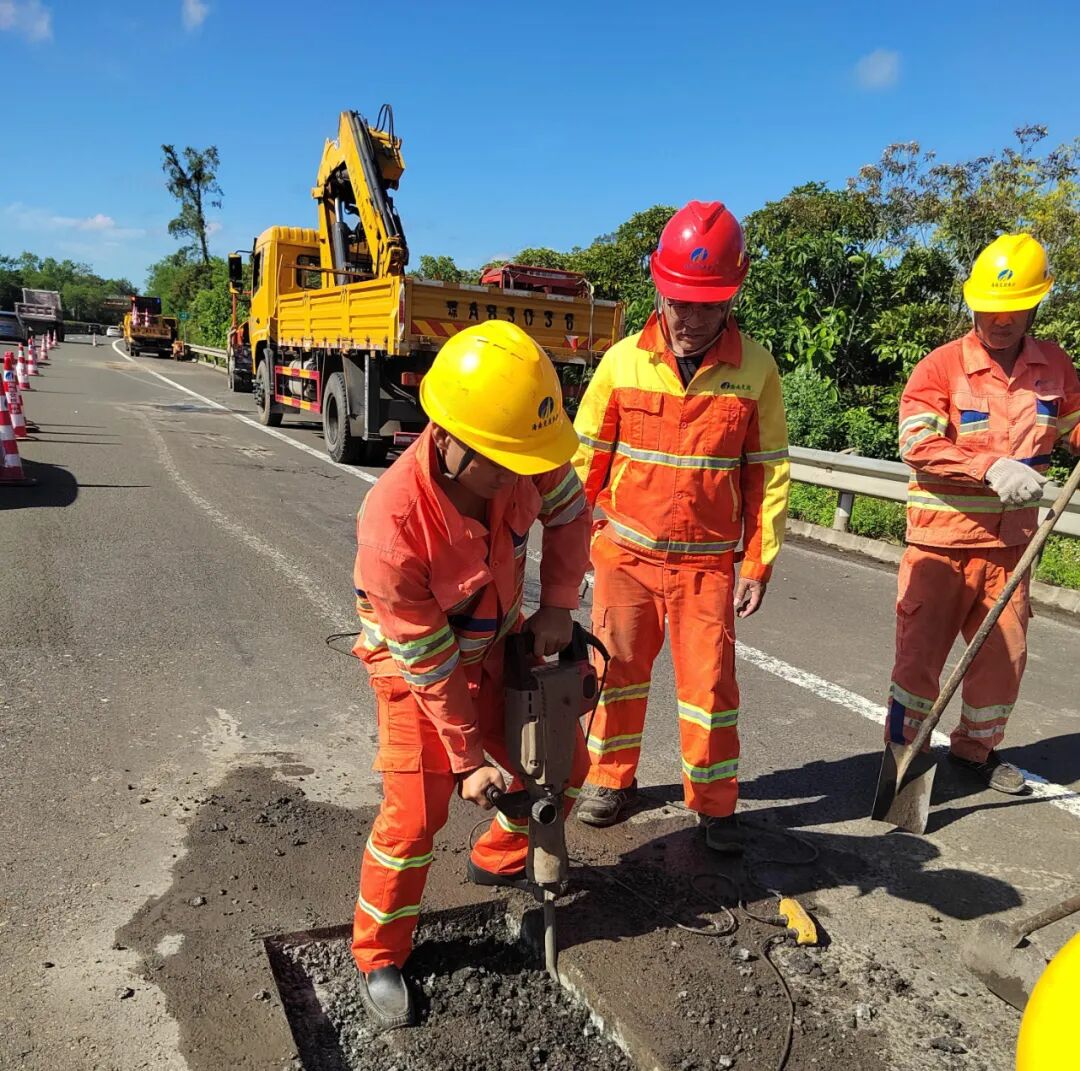 薛茂堅,海南交投養護公司永興管理站站長,一位扎根養護事業多年的資深養護人。對他而言,帶徒弟不僅是傳技術,更是傳責任。作為王其輝的幫帶師傅,薛茂堅把自己多年的實踐經驗凝結成一套系統的教學方法,傾囊相授給徒弟。“切割要垂直,清理要徹底,涂粘層不能省——”每一次坑槽修補,他都邊示范邊講解。刀片切入路面,粉塵揚起,他依然語氣平穩:“基礎不穩,補得再平也撐不久。”清理渣土、涂刷乳化瀝青、填鋪新料、碾壓夯實……他手把手地教,也一句句地叮囑:“別小看一個坑槽,它連的是千萬人的平安。”王其輝看在眼里,記在心里。他說:“師傅教的不僅是步驟,更是一種態度——對路負責,就是對生命負責。”