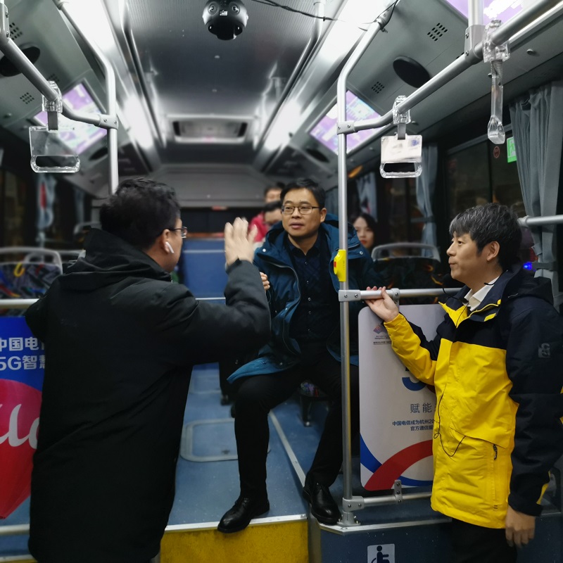 陳泰鋒副總經理一行實地調研了“何方5G智能網聯公交車項目”,現場體驗“聰明的車、智慧的路、全能的站”。整個項目一期覆蓋從奔競大道沿市心北路至振寧路往返全程7公里的路段,涉及7個路口、2個公交站臺的智能化改造,3輛經改造的智能網聯公交車正式投入運營。