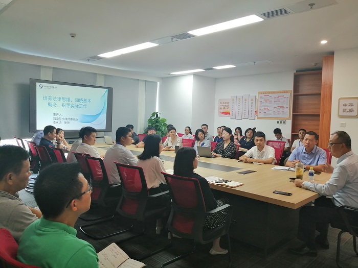 8月27日下午,海南省交控服務區投資有限公司舉辦“我為加快推進海南自由貿易港建設做貢獻”系列活動之法律知識專題講座,邀請了海南昌宇律師事務所律師李永濤進行授課,服務區公司、匯金公司、環島旅游公路公司全體員工參加講座。