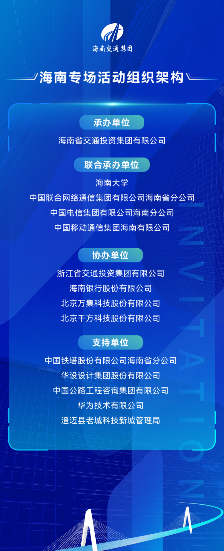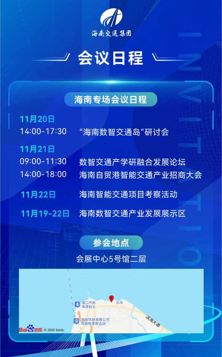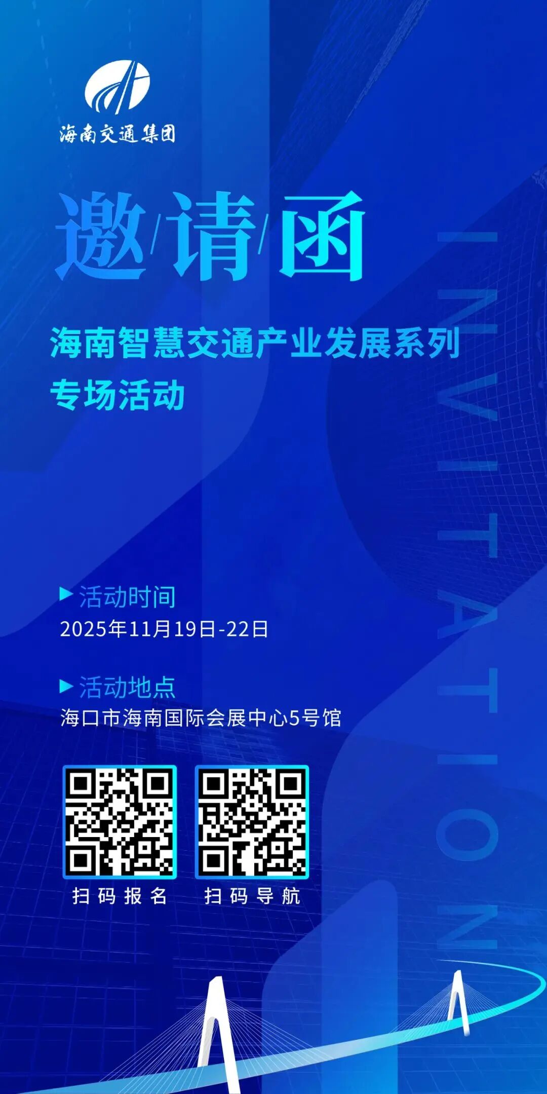 智慧交通,海南機遇,聚焦前沿,共謀發展!海南交通集團誠邀您撥冗出席系列專場活動,與業界精英共話海南智慧交通新未來。席位有限,請速掃碼報名!