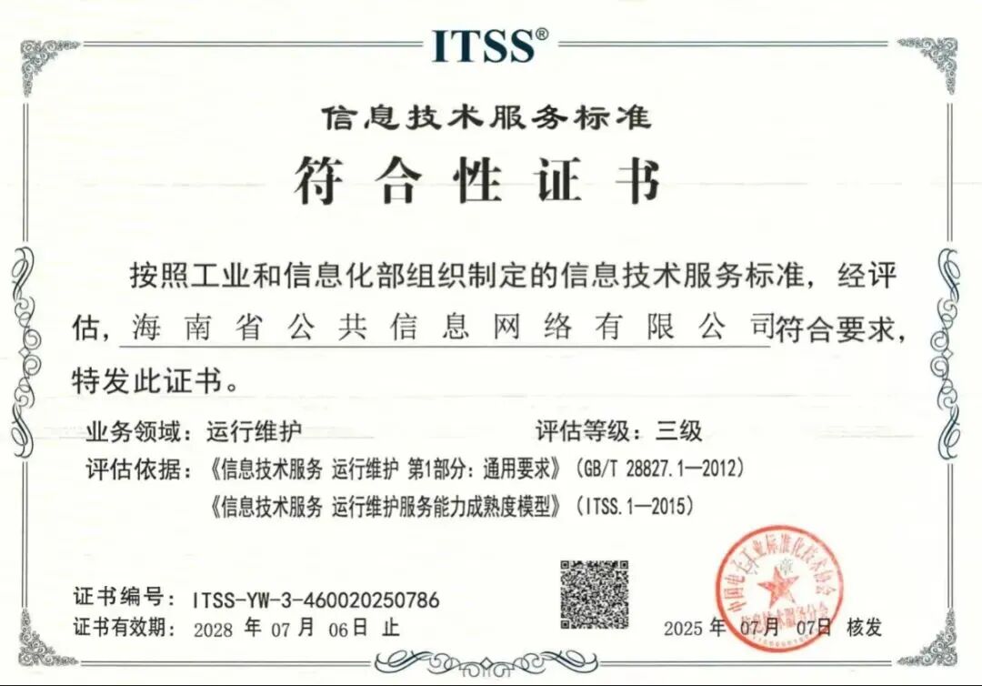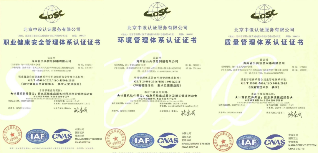 此(ci)次資質認證工作覆蓋范圍廣、標準(zhun)要求嚴。申請(qing)過程中(zhong),公(gong)(gong)網公(gong)(gong)司各部門(men)高(gao)(gao)效(xiao)協同、密切配合(he),在較短時(shi)間(jian)內高(gao)(gao)效(xiao)完成制度流(liu)程梳理、文件編制和(he)現(xian)場整改等一系列繁重(zhong)任務,有力(li)(li)保障(zhang)了認證審核順利通(tong)過。未來公(gong)(gong)網公(gong)(gong)司將以此(ci)次認證為(wei)新起點,緊緊圍繞海南交通(tong)集團和(he)海南高(gao)(gao)速的(de)戰略部署,始終堅持“高(gao)(gao)標準(zhun)、嚴要求、實舉措(cuo)”,繼續高(gao)(gao)度重(zhong)視(shi)信(xin)息技術服務能力(li)(li)和(he)信(xin)息安全管理能力(li)(li)的(de)建設,不斷增強公(gong)(gong)網公(gong)(gong)司綜合(he)實力(li)(li)和(he)核心競爭力(li)(li),為(wei)實現(xian)高(gao)(gao)質量、可(ke)持續發展奠定堅實基礎。.png)